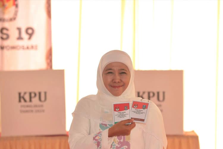 TIMES Singkawang/Calon Gubernur Jawa timur nomor urut dua Khofifah Indar Parawansa nyoblos menyalurkan hak suara di TPS 19 Kelurahan Jemur Wonosari Kecamatan Wonocolo, Kota Surabaya (FOTO: dok KIP)